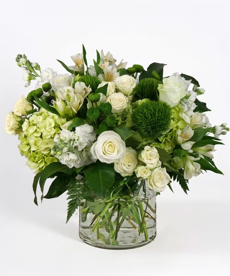 Want something to WOW your dinner table at your St. Patrick’s Day event, look no further than here. This vase features hydrangeas, alstroemeria, roses and spray roses among other seasonal flowers. Would add a nice touch of beauty wherever it goes.